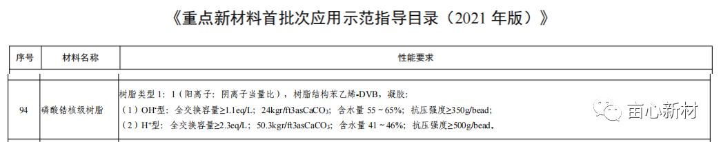 2022新年伊始,國家工信部發布的《重點新材料首批次應用示范指導目錄(2021年版)》中,第94項新材料為“磷酸鋯核級樹脂”,畝心創業團隊堅守多年的磷酸鋯及磷酸鋯核級樹脂項目終于被國家“點名”了!